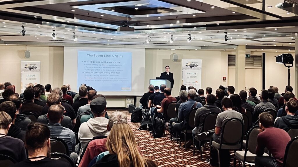 Mario Heiderich reflects on the history of the seven sins in order to help us understand our cyber security future in the keynot talks at #BSidesMunich23, #7SYNs Edition!